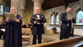 Sally Perkins (Alto), David Watkin-Holmes (Tenor) and Charles Cunliffe (Bass) at St. Margaret's Church.