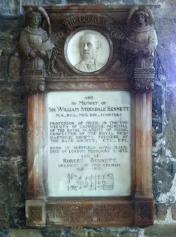 Memorial to William Sterndale Bennett in Sheffield Cathedral, which quotes the opening bars of "God is a Spirit",